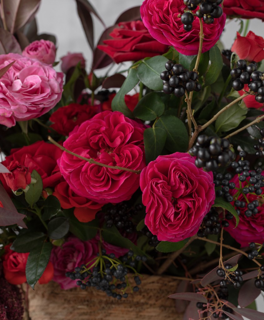 Композиция в корзине, "Гранатовый браслет"